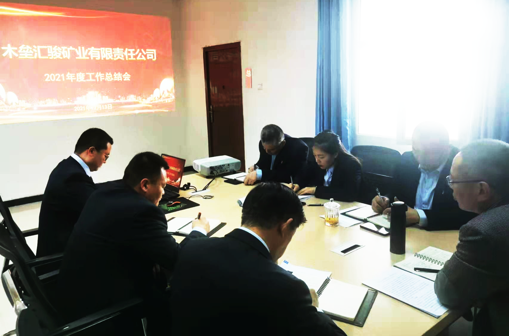 12月13日,公司党委副书记、副总经理在木垒汇骏矿业公司组织召开2021年度工作总结会议,会议由木垒汇骏矿业公司总经理助理主持,汇骏公司全体人员参会。